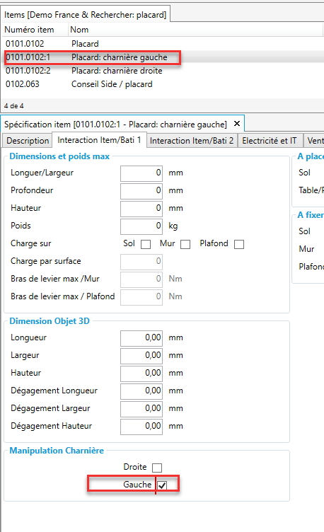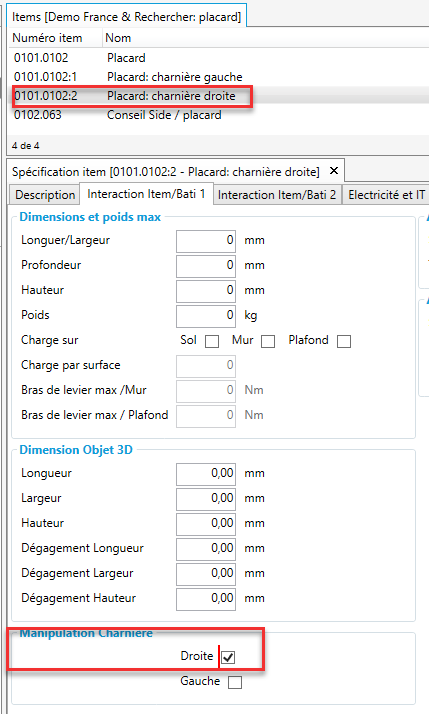 Ce que vous pouvez faire est de créer 2 items enfants de l'item "Placard" dans dRofus: