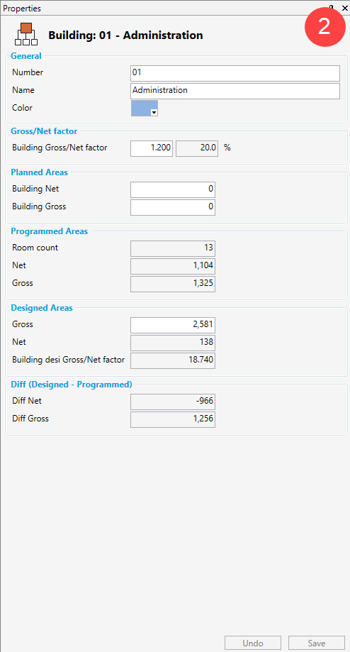 Facteur brut/net: Utilisé pour le calcul de la surface brute modélisée.