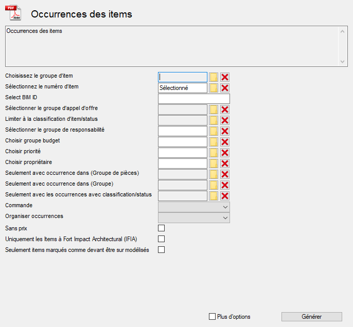 Rapport PDF directement depuis le module d'items