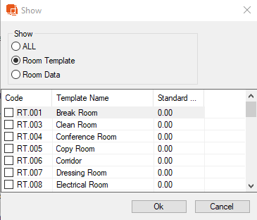 Gabarit: Les filtres rapportent les données pour afficher tous les Gabarits, Gabarits de pièce ou Gabarits de données de pièce.