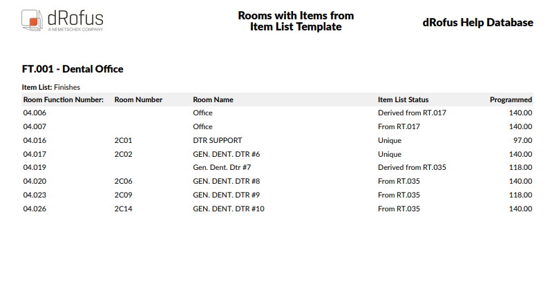 Ce rapport répertorie les pièces contenant des items provenant de gabarits de listes d'items spécifiques.