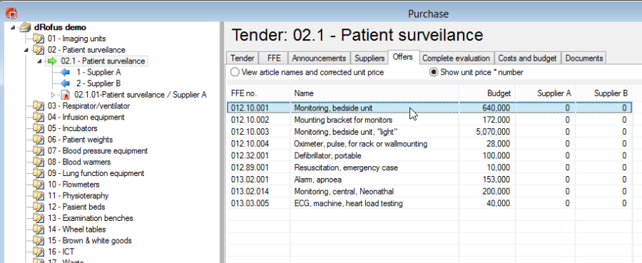 L'onglet Propositions au stade d'appel d'offres peut être utilisé à des fins d'évaluation. Celui-ci peut être exporté vers MS Word ou Excel en plus de l'Évaluation sous les items d'appel d'offres.