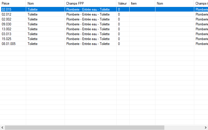 Si vous voulez exécuter toutes les règles sur une pièce, ouvrir une liste des équipements (cf. § 11.3), puis sélectionner Vérification FPP↔ items.