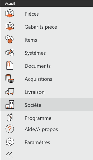 Pour obtenir un aperçu complet de l'ensemble des entreprises créées en vue des items et des produits, vous pouvez vous rendre au module des Sociétés, à gauche dans le menu principal