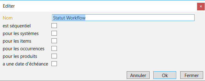 - Nom - sera le nom donné au processus de travail (ex. "Workflow Produit")