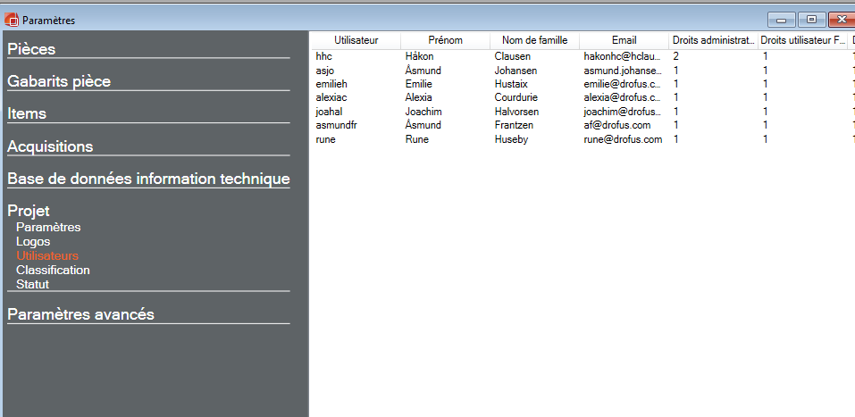 Affiche les utilisateurs du projet et leur droit d'accès.